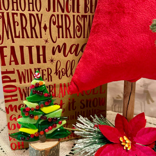 A second chance to Create your own 4.5” fused glass Christmas tree with Glass Artist Denise with DeeBee Glass. Your custom tree will be secured on a wood slice base.